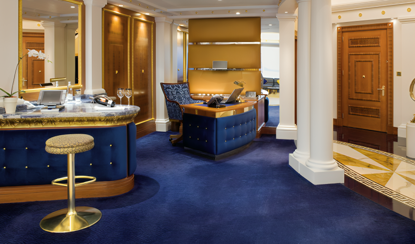 • Explore the Royal Suite, atrium, and Experience Suite with your guide.